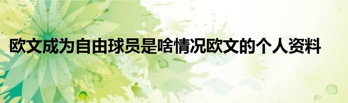 大家好.我是互联百科的羽儿,现在为大家解决以上欧文成为自由球员是啥情况欧文的个人资料的问题.