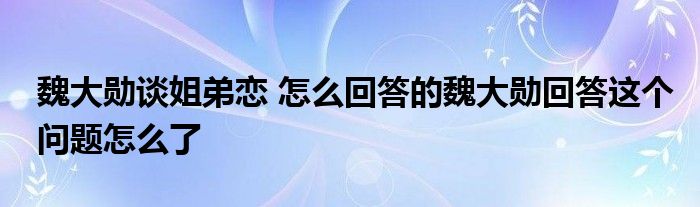 大家好.我是互联百科的羽儿,现在为大家解决以上魏大勋谈姐弟恋 怎么回答的魏大勋回答这个问题怎么了的问题.