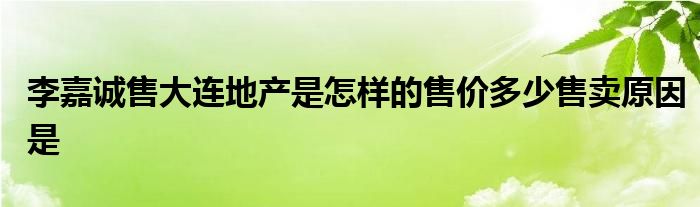 李嘉诚售大连地产是怎样的售价多少售卖原因是