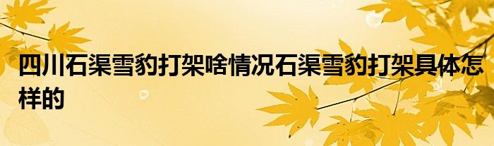 大家好.我是互联百科的羽儿,现在为大家解决以上四川石渠雪豹打架啥情况石渠雪豹打架具体怎样的的问题.