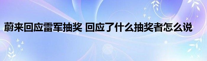 大家好.我是互联百科的羽儿,现在为大家解决以上蔚来回应雷军抽奖 回应了什么抽奖者怎么说的问题.