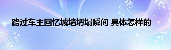 大家好.我是互联百科的羽儿,现在为大家解决以上路过车主回忆城墙坍塌瞬间 具体怎样的的问题.