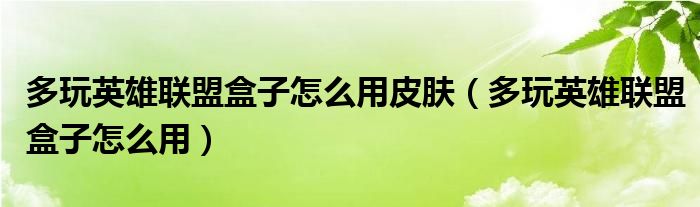 大家好,雨雨来为大家解答以上问题,多玩英雄联盟盒子怎么用皮肤,多玩英雄联盟盒子怎么用很多人还不知道,现在让我们一起来看看吧!