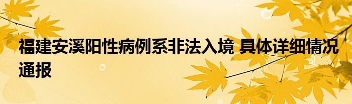 1、福建安溪阳性病例系非法入境