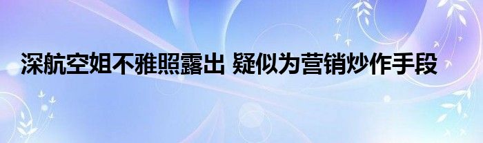 大家好.我是互联百科的羽儿,现在为大家解决以上深航空姐不雅照露出 疑似为营销炒作手段的问题.