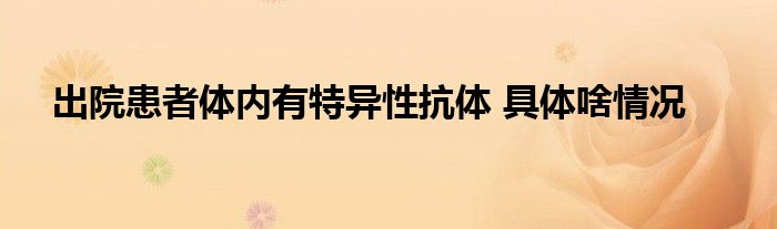 大家好.我是互联百科的羽儿,现在为大家解决以上出院患者体内有特异性抗体 具体啥情况的问题.