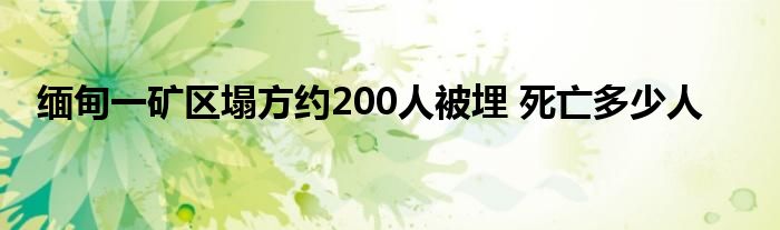 大家好.我是互联百科的羽儿,现在为大家解决以上缅甸一矿区塌方约200人被埋 死亡多少人的问题.
