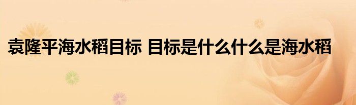 大家好.我是互联百科的羽儿,现在为大家解决以上袁隆平海水稻目标 目标是什么什么是海水稻的问题.