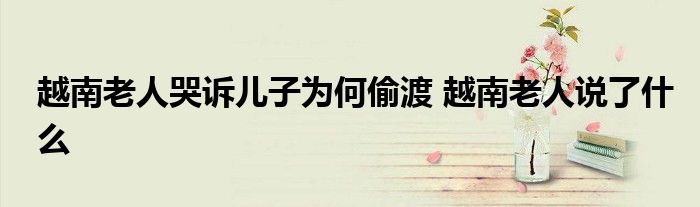 大家好.我是互联百科的羽儿,现在为大家解决以上越南老人哭诉儿子为何偷渡 越南老人说了什么的问题.