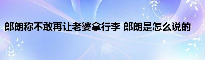 大家好.我是互联百科的羽儿,现在为大家解决以上郎朗称不敢再让老婆拿行李 郎朗是怎么说的的问题.