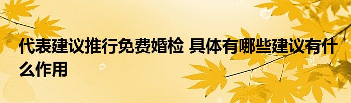 大家好.我是互联百科的羽儿,现在为大家解决以上代表建议推行免费婚检 具体有哪些建议有什么作用的问题.