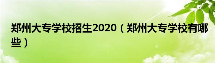 1、郑州的大专有哪些?郑州的大专院校很多,比较知名的有如下几所:一、郑州轻工业学院民族职业学院,学校地址:河南省郑州市北环路东段10号。