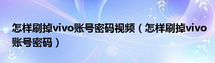 大家好,小晋来为大家解答以下问题,关于怎样刷掉vivo账号密码视频,怎样刷掉vivo账号密码很多人还不知道,今天让我们一起来看看吧!