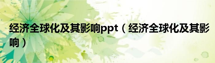 关于经济全球化及其影响ppt,经济全球化及其影响这个很多人还不知道,今天菲菲来为大家解答以上的问题,现在让我们一起来看看吧!