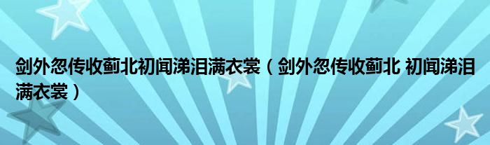 大家好,小晋来为大家解答以下问题,关于剑外忽传收蓟北初闻涕泪满衣裳,剑外忽传收蓟北 初闻涕泪满衣裳很多人还不知道,今天让我们一起来看看吧!
