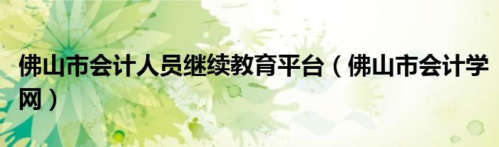 关于佛山市会计人员继续教育平台,佛山市会计学网这个很多人还不知道,今天菲菲来为大家解答以上的问题,现在让我们一起来看看吧!