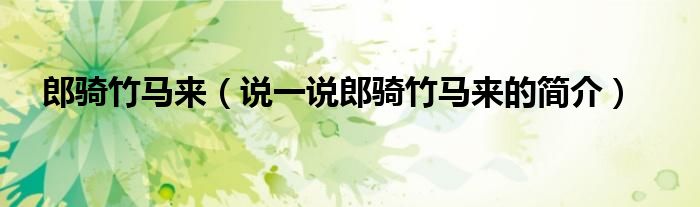 夏弥来为大家解答以下的问题,郎骑竹马来,说一说郎骑竹马来的简介,现在让我们一起来看看吧!