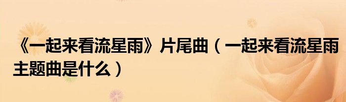 关于《一起来看流星雨》片尾曲,一起来看流星雨主题曲是什么这个很多人还不知道,今天菲菲来为大家解答以上的问题,现在让我们一起来看看吧!