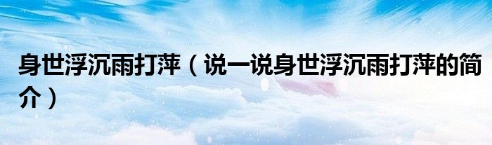 身世浮沉雨打萍(说一说身世浮沉雨打萍的简介)