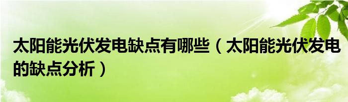 太阳能光伏发电缺点有哪些(太阳能光伏发电的缺点分析)