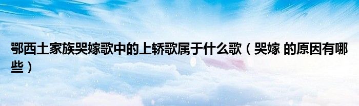 关于鄂西土家族哭嫁歌中的上轿歌属于什么歌,哭嫁 的原因有哪些这个很多人还不知道,今天菲菲来为大家解答以上的问题,现在让我们一起来看看吧!