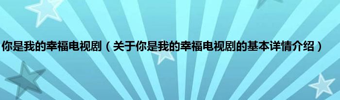 本文关于你是我的幸福电视剧的基本详情介绍就讲解完毕,希望对大家有所帮助。