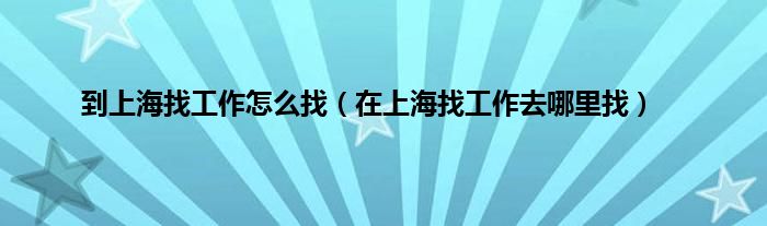 大家好,综合小编来为大家讲解下到上海找工作怎么找,在上海找工作去哪里找这个很多人还不知道,现在让我们一起来看看吧!