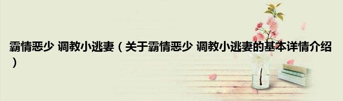 本文关于霸情恶少 调教小逃妻的基本详情介绍就讲解完毕,希望对大家有所帮助。