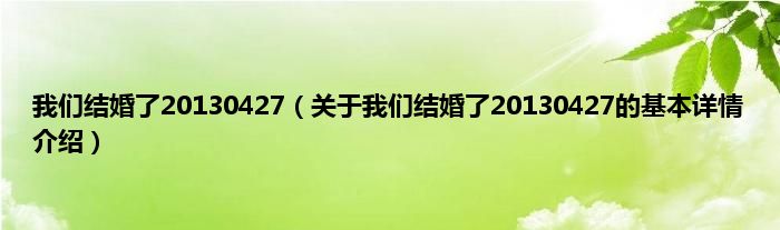本文关于我们结婚了20130427的基本详情介绍就讲解完毕,希望对大家有所帮助。