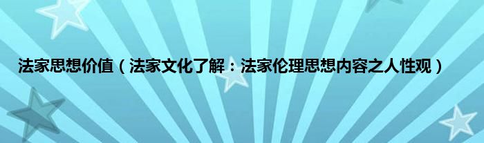 大家好,综合小编来为大家讲解下。法家思想价值,法家文化了解:法家伦理思想内容之人性观这个很多人还不知道,现在让我们一起来看看吧!