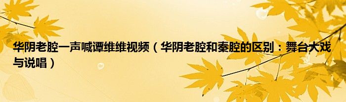 本文华阴老腔一声喊谭维维视频,华阴老腔和秦腔的区别:舞台大戏与说唱到此分享完毕,希望对大家有所帮助。