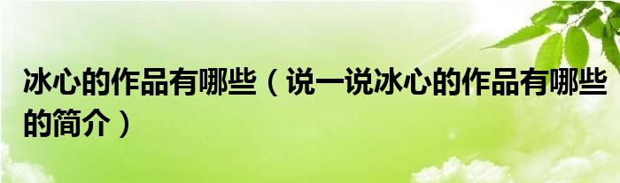 夏弥来为大家解答以下的问题,冰心的作品有哪些,说一说冰心的作品有哪些的简介,现在让我们一起来看看吧!