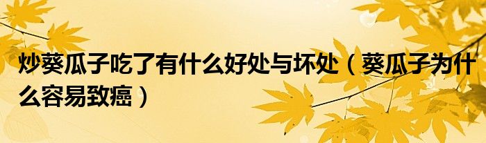 关于炒葵瓜子吃了有什么好处与坏处,葵瓜子为什么容易致癌这个很多人还不知道,今天菲菲来为大家解答以上的问题,现在让我们一起来看看吧!