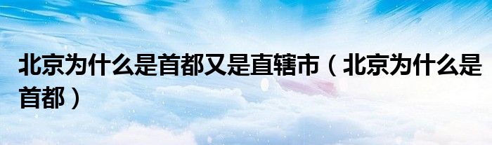 北京为什么是首都又是直辖市(北京为什么是首都)