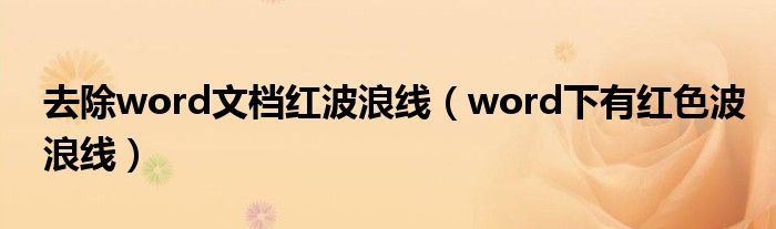 关于去除word文档红波浪线,word下有红色波浪线这个很多人还不知道,今天菲菲来为大家解答以上的问题,现在让我们一起来看看吧!