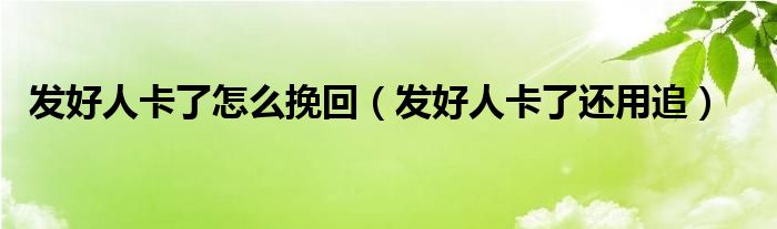 关于发好人卡了怎么挽回,发好人卡了还用追这个很多人还不知道,今天菲菲来为大家解答以上的问题,现在让我们一起来看看吧!