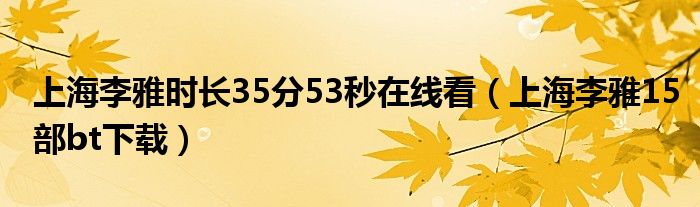 上海李雅时长35分53秒在线看(上海李雅15部bt下载)