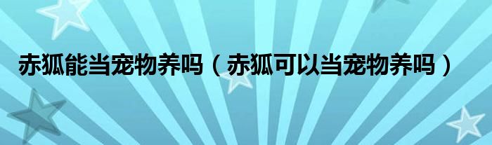 赤狐能当宠物养吗(赤狐可以当宠物养吗)