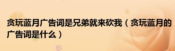 大家好,小夏来为大家讲解下。贪玩蓝月广告词是兄弟就来砍我,贪玩蓝月的广告词是什么很多人还不知道,现在让我们一起来看看吧!
