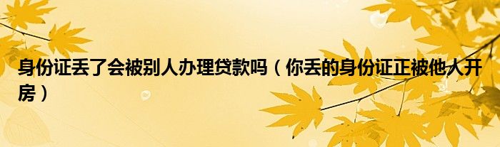 大家好,我是小科,我来为大家解答以上问题。身份证丢了会被别人办理贷款吗,你丢的身份证正被他人开房很多人还不知道,现在让我们一起来看看吧!