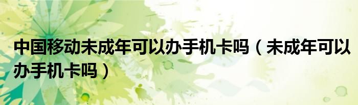 大家好,我是小科,我来为大家解答以上问题。中国移动未成年可以办手机卡吗,未成年可以办手机卡吗很多人还不知道,现在让我们一起来看看吧!