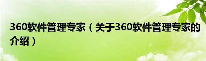 大家好,小夏来为大家解答以上的问题。360软件管理专家,关于360软件管理专家的介绍很多人还不知道,现在让我们一起来看看吧!