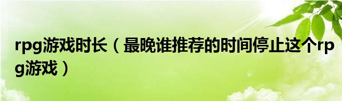 大家好,小联来为大家解答以上的问题。rpg游戏时长,最晚谁推荐的时间停止这个rpg游戏这个很多人还不知道,现在让我们一起来看看吧!