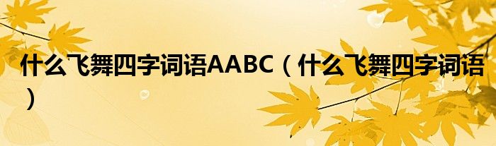 大家好,小晋来为大家解答以下问题,关于什么飞舞四字词语AABC,什么飞舞四字词语很多人还不知道,今天让我们一起来看看吧!