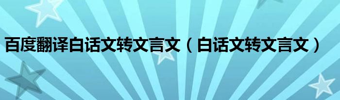 百度翻译白话文转文言文(白话文转文言文)