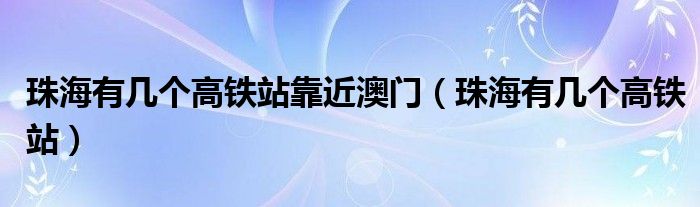 珠海有几个高铁站靠近澳门(珠海有几个高铁站)