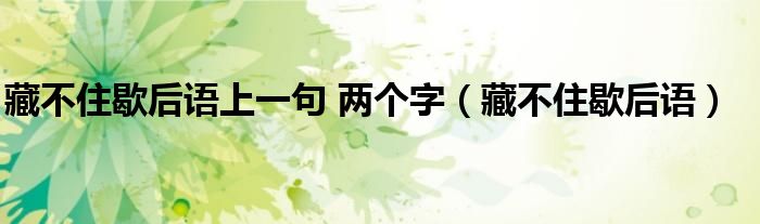 大家好,小晋来为大家解答以下问题,关于藏不住歇后语上一句 两个字,藏不住歇后语很多人还不知道,今天让我们一起来看看吧!