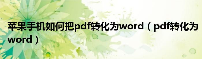 苹果手机如何把pdf转化为word(pdf转化为word)