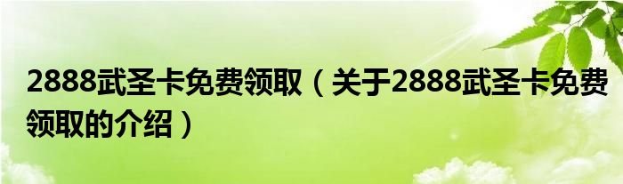 2888武圣卡免费领取(关于2888武圣卡免费领取的介绍)