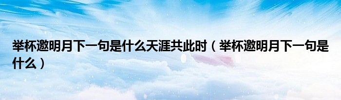 大家好,我是小科,我来为大家解答以上问题。举杯邀明月下一句是什么天涯共此时,举杯邀明月下一句是什么很多人还不知道,现在让我们一起来看看吧!